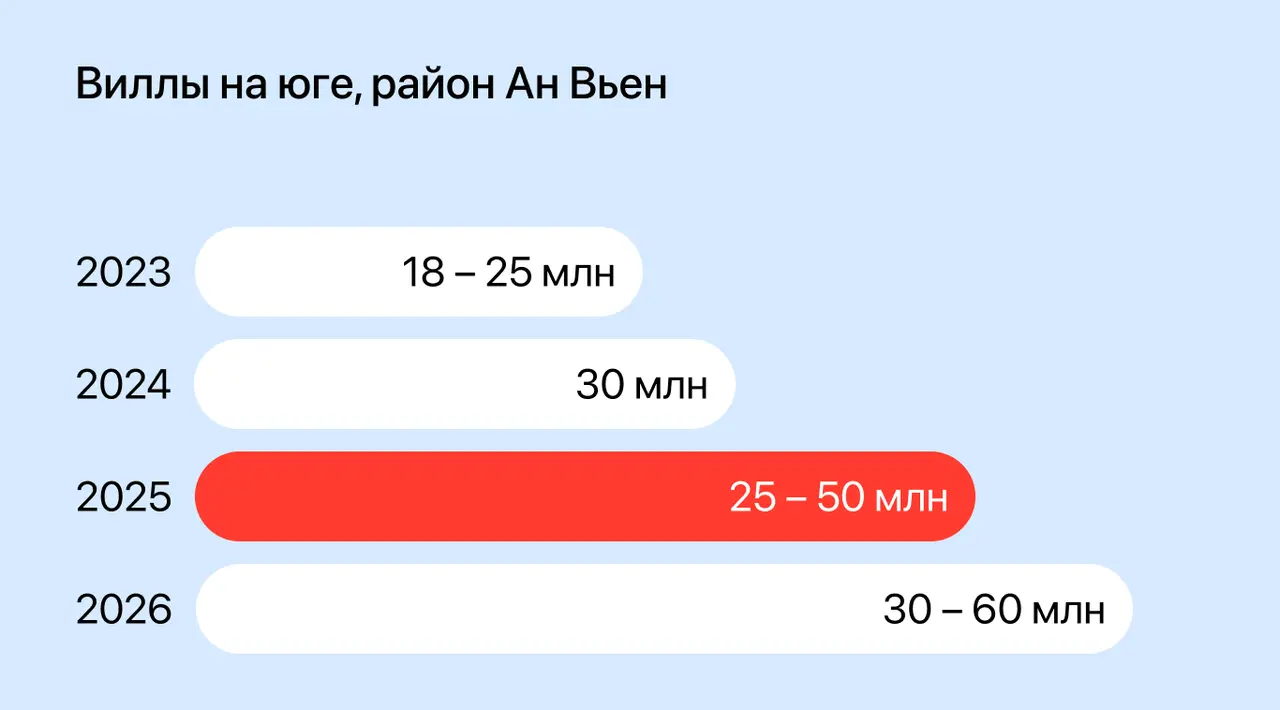 Если в 2023 году виллы здесь обычно сдавались за 18–25 млн VND, то к 2026 ставки уже доходят до 30–60 млн VND