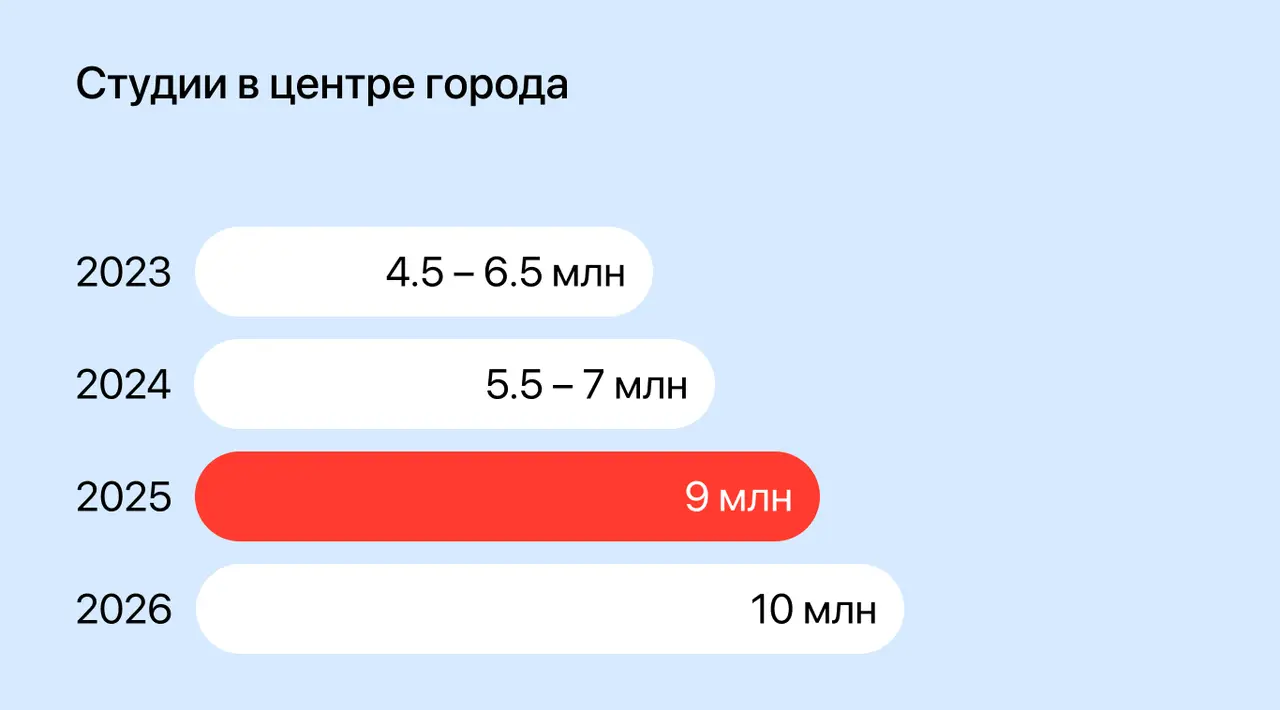 Такой рост можно назвать стабильным, но без перегрева. Центр по-прежнему остаётся удобной и понятной локацией, но рынок здесь во многом завязан на краткосрочную аренду, туристов и более подвижный поток арендаторов